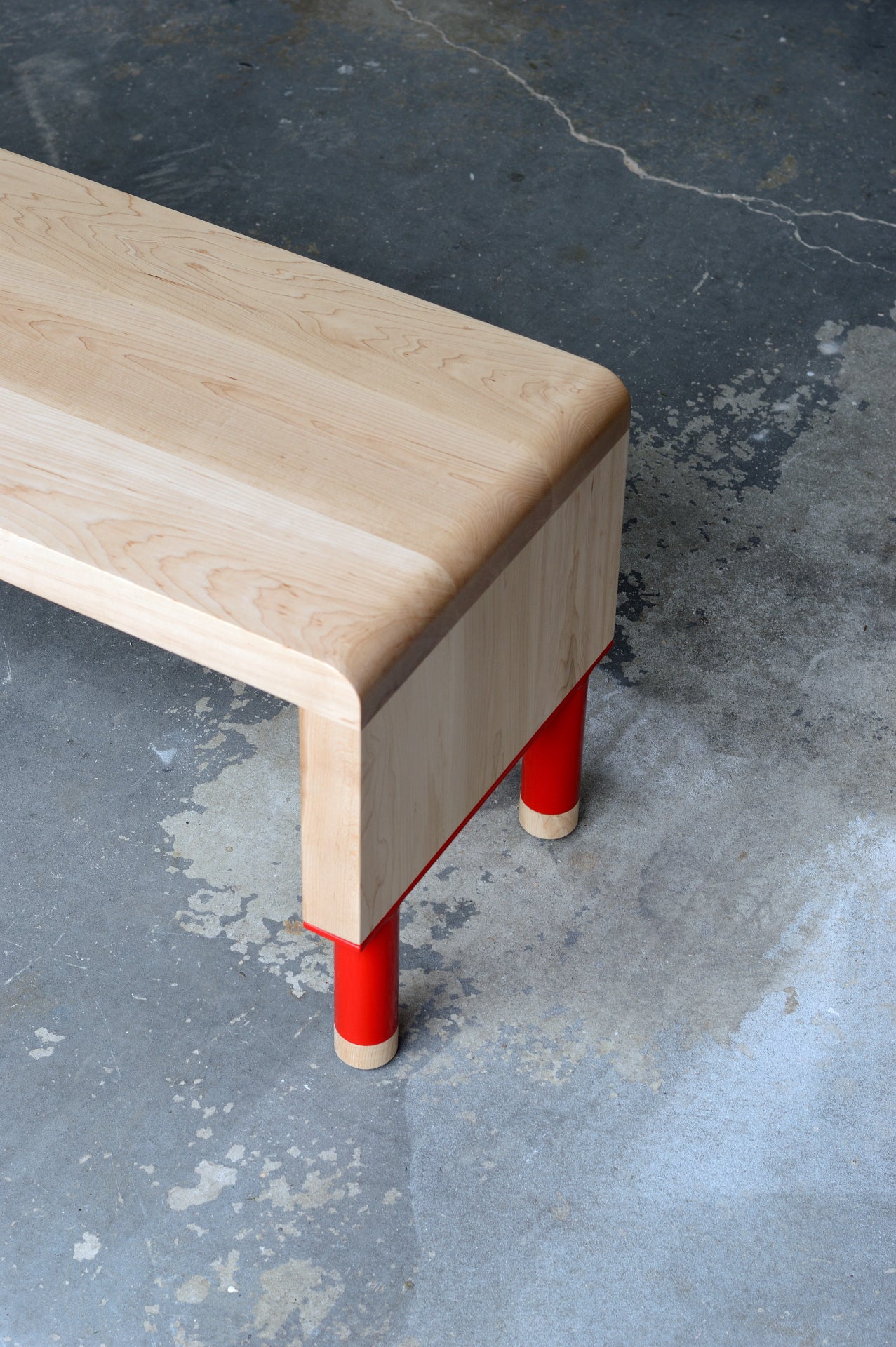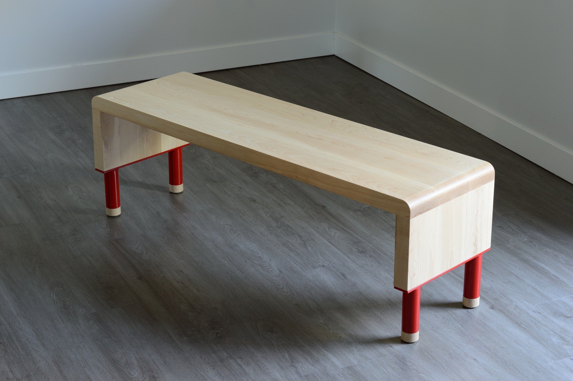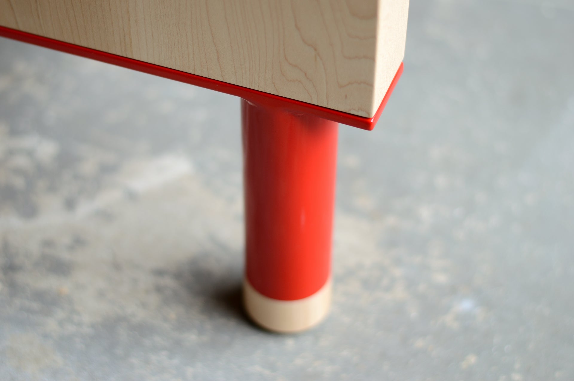 [shown in eastern maple with red powder coat legs // 55 inch]Â