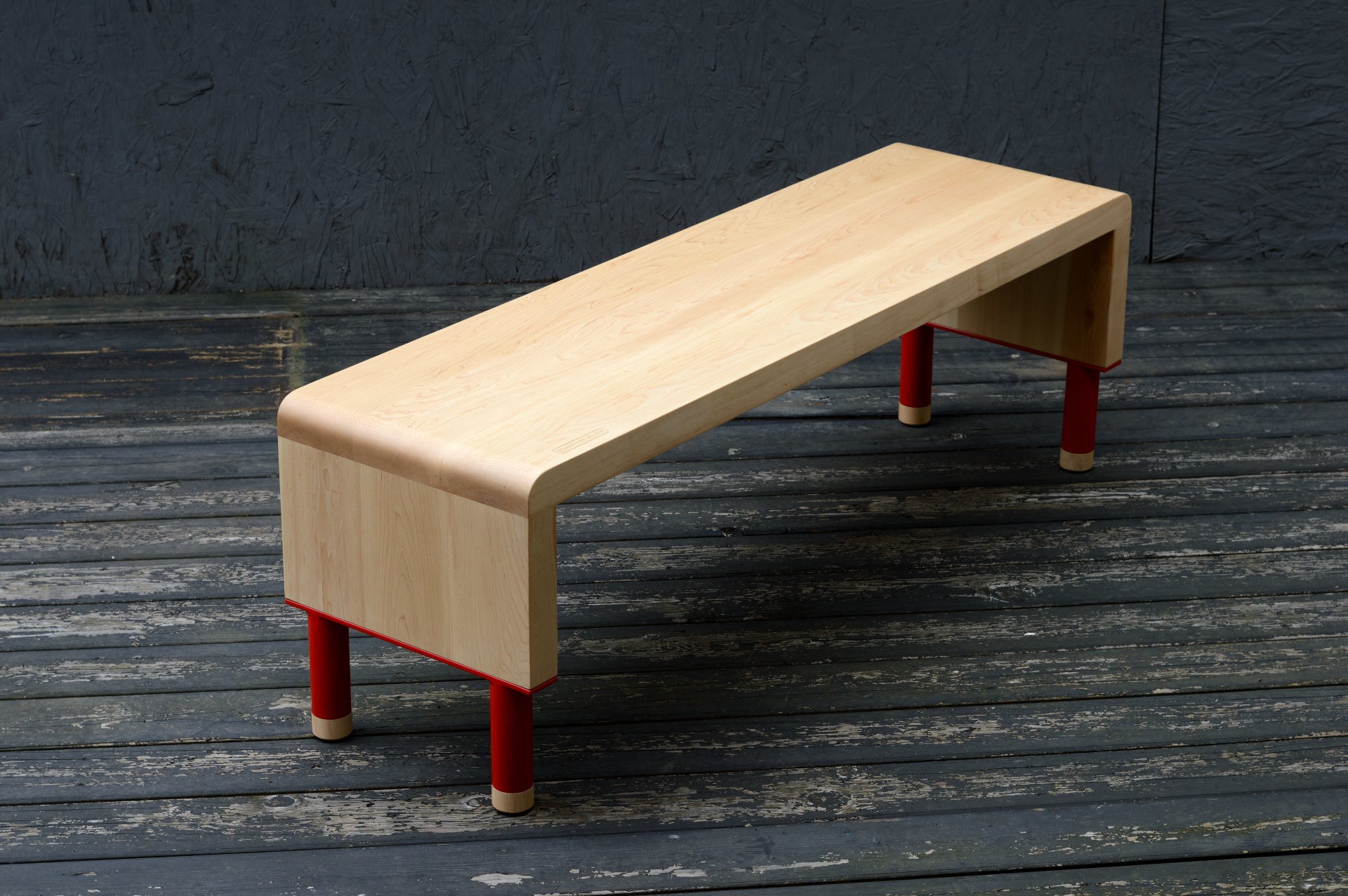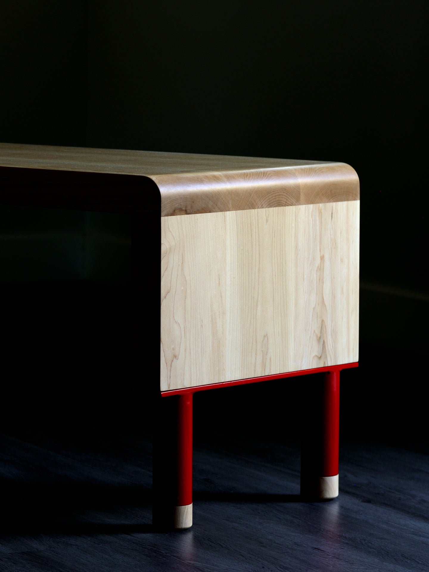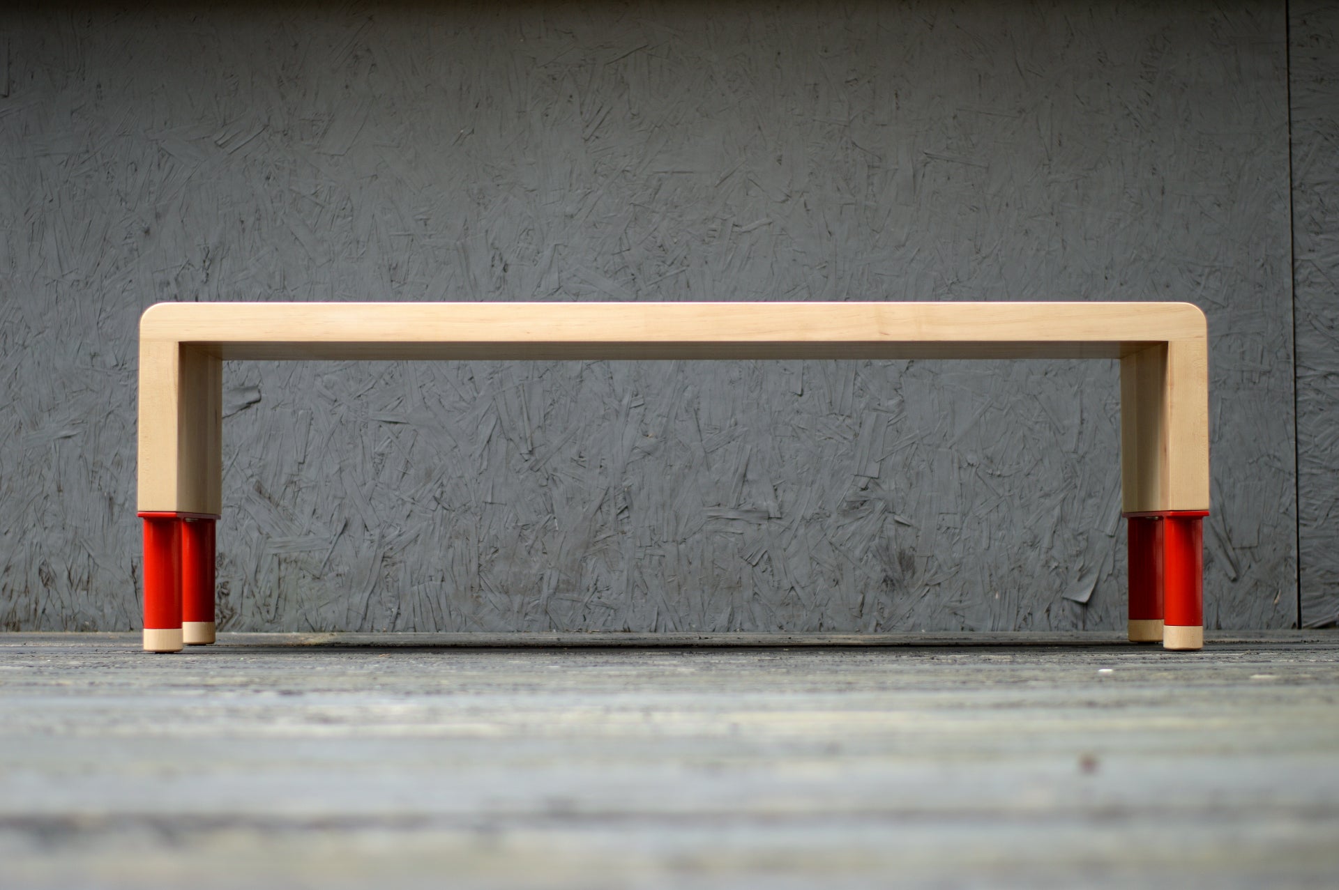 [shown in eastern maple with red powder coat legs // 55 inch]Â